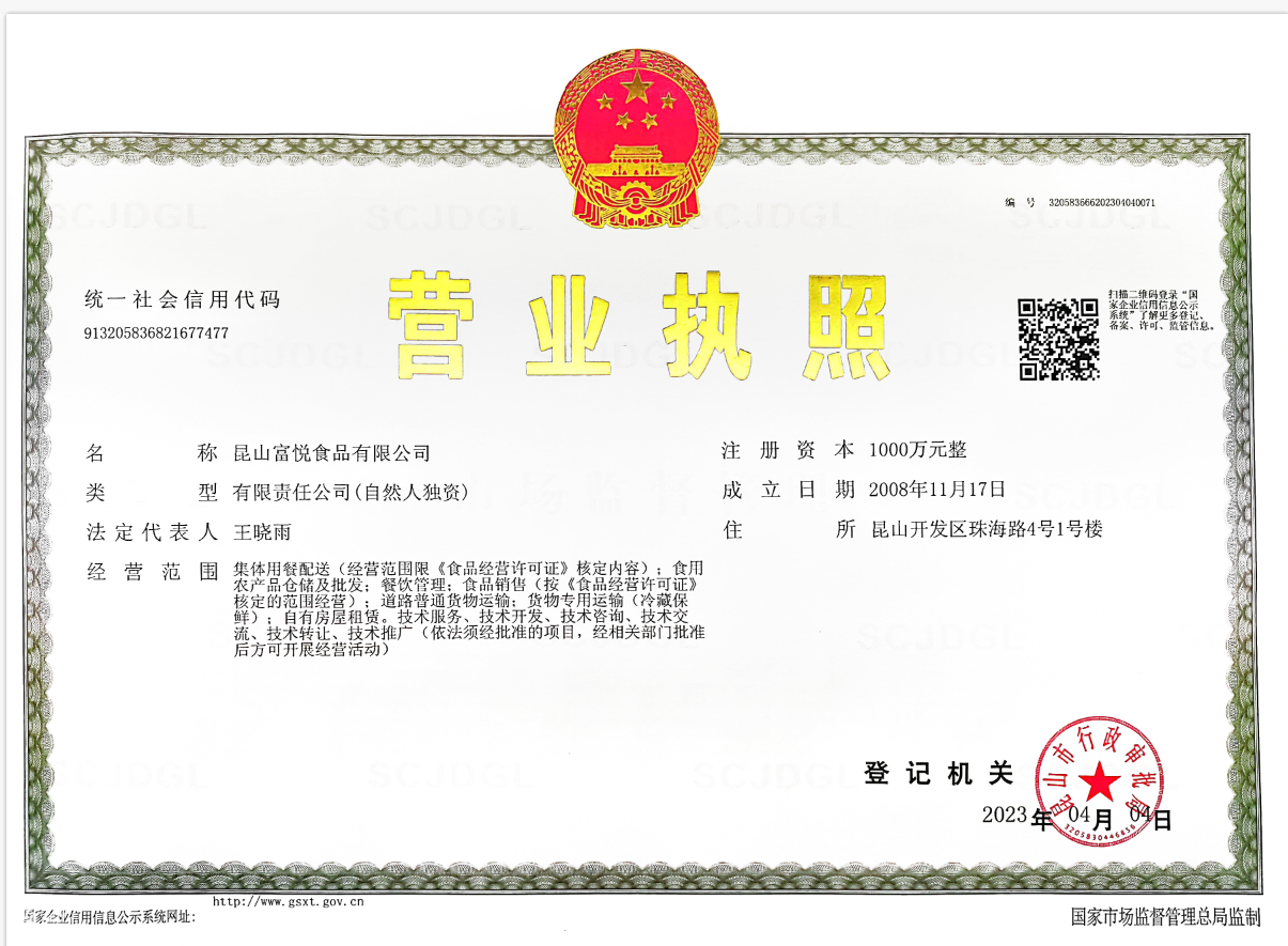 昆山富悦食品有限公司成立于2008年,注册资金1000万,公司位于全国百强县美丽的昆山。初期公司在张浦拥有3000平方米的配餐中央厨房,主要经营:集体用餐配送、食堂承包、净菜配送。